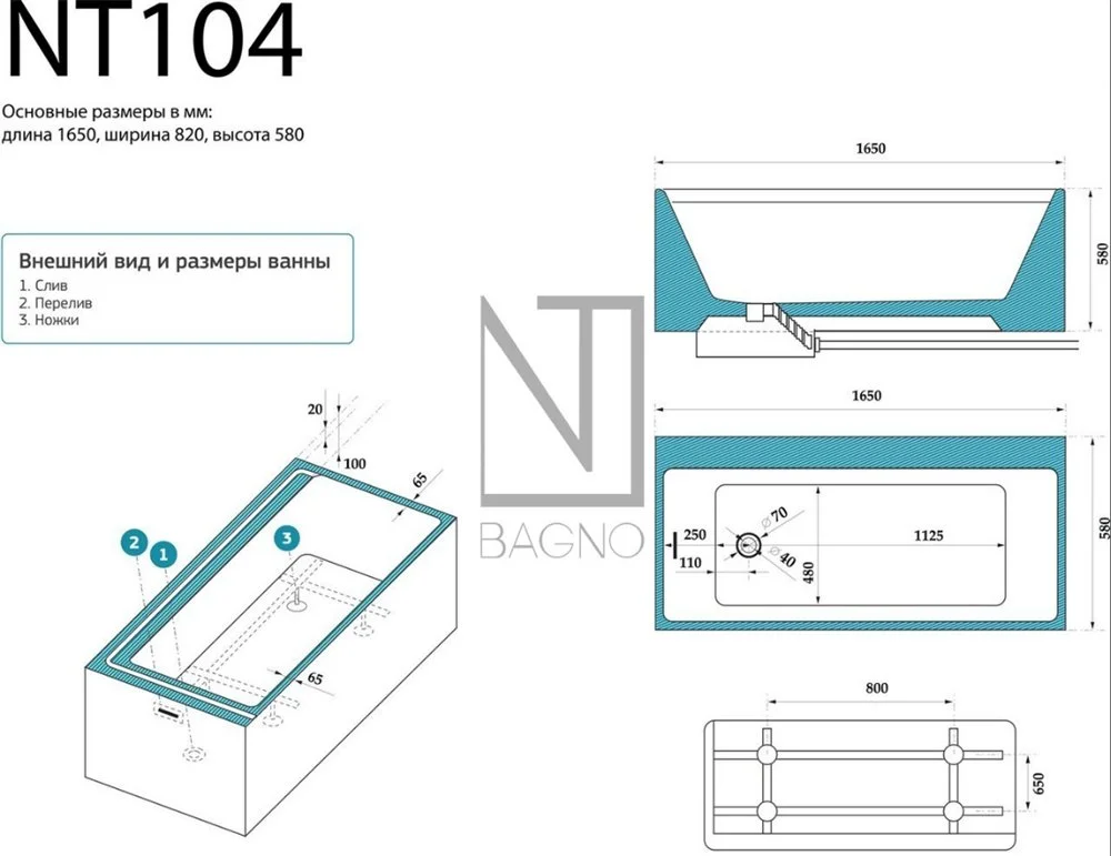Ванна NT 104 - это выигрышное сочетание простоты и утонченности, это отличный вариант, который обеспечит элегантность и функциональность в одной модели.