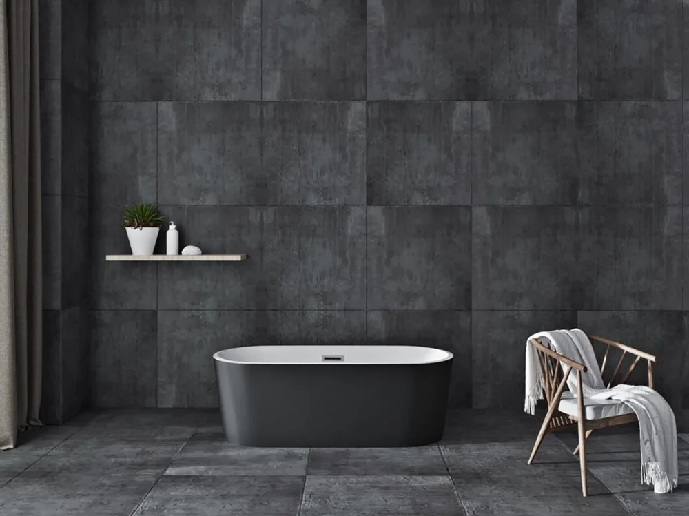 Конструкция ванны одновременно проста и необычна. У нее слегка наклонные стенки, что создает приятный глазу трапециевидный силуэт. Такая ванна может успешно устанавливаться в центре помещения или же монтироваться привычным образом – примыкая к одной из стенок комнаты.