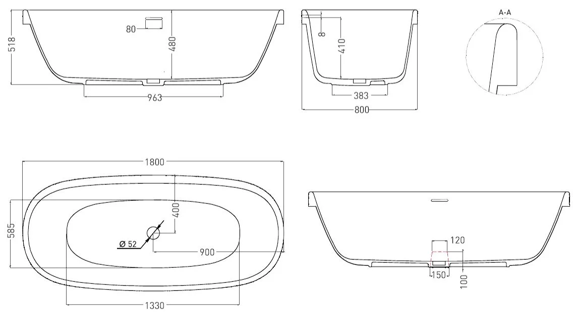 Отдельностоящая GRECA IN сохранила стандартную глубину, став при этом ниже. Благодаря такой конструкции заходить в ванну теперь ещё удобнее.