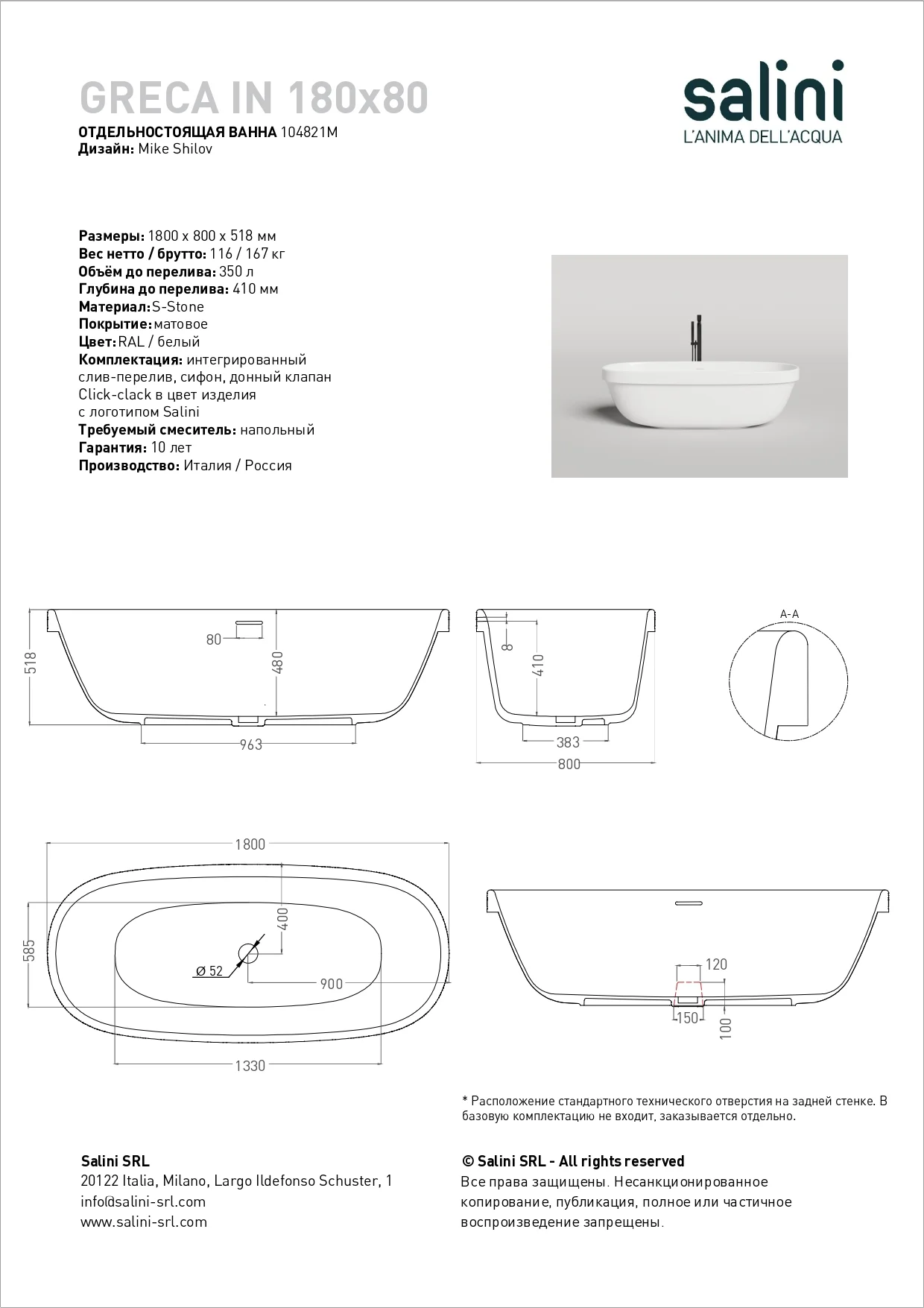 Отдельностоящая GRECA IN сохранила стандартную глубину, став при этом ниже. Благодаря такой конструкции заходить в ванну теперь ещё удобнее.