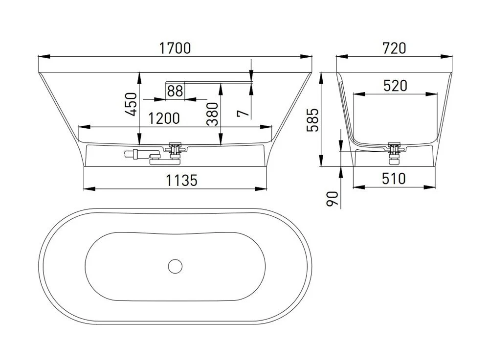 Ванна отдельностоящая Salini MONA 170х72 102912GN из искусственного камня