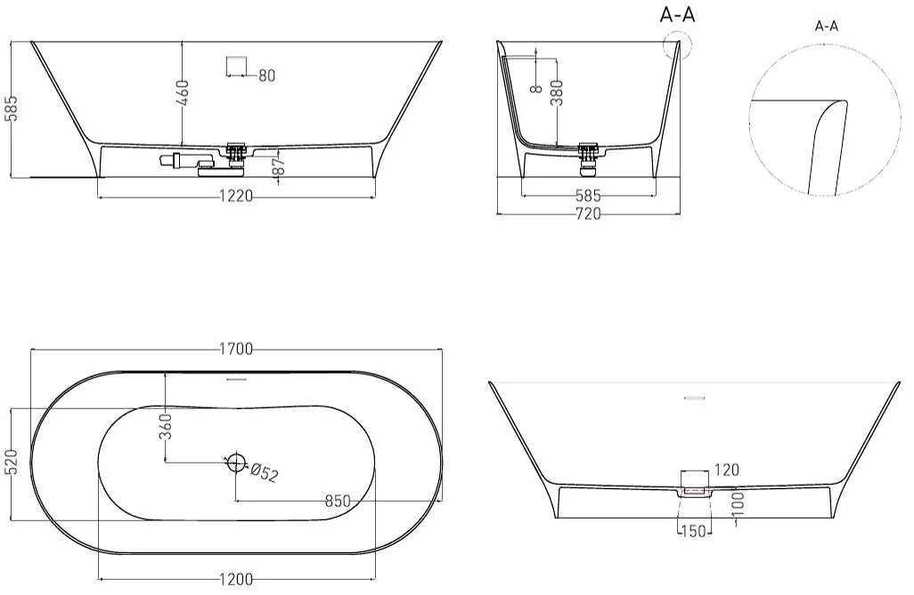 На изображениях ванна представлена в цветах RAL Classic 2005, RAL Classic 1016 и в классическом белом цвете.