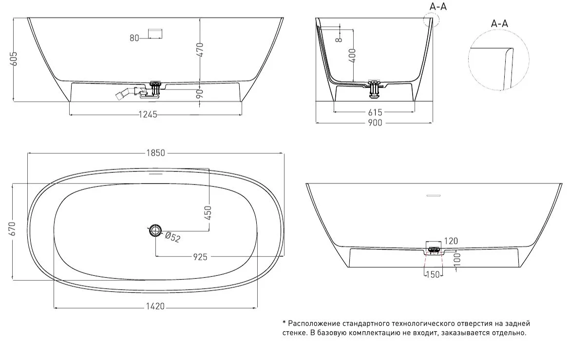 На изображениях ванна представлена в RAL Classic 5001 и в классическом белом цвете.