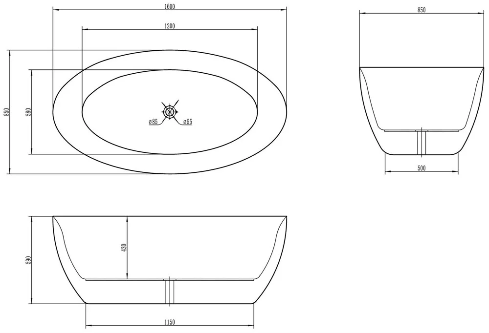 Ванна отдельностоящая Vincea VBT-101, 1600x850x590 белая акриловая