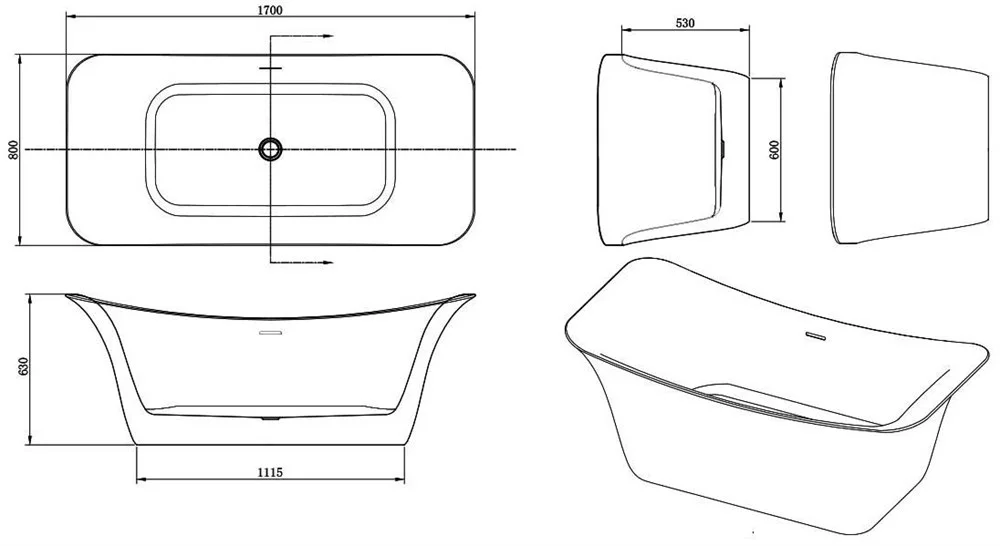Ванна отдельностоящая Vincea VBT-208, 1700x800x650 белая акриловая