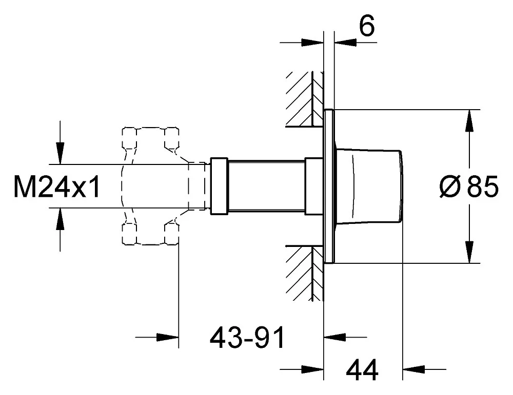 • Плавная регулировка глубины монтажа 43 - 91 мм