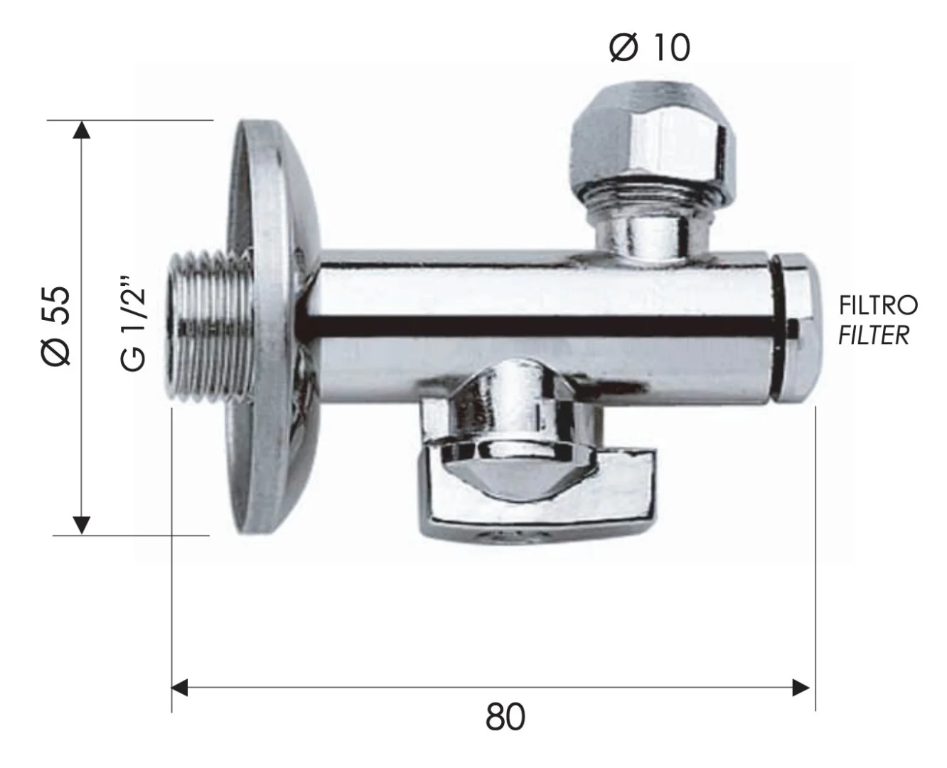 Вентиль запорный Remer 1231210 с фильтром 1/2x10