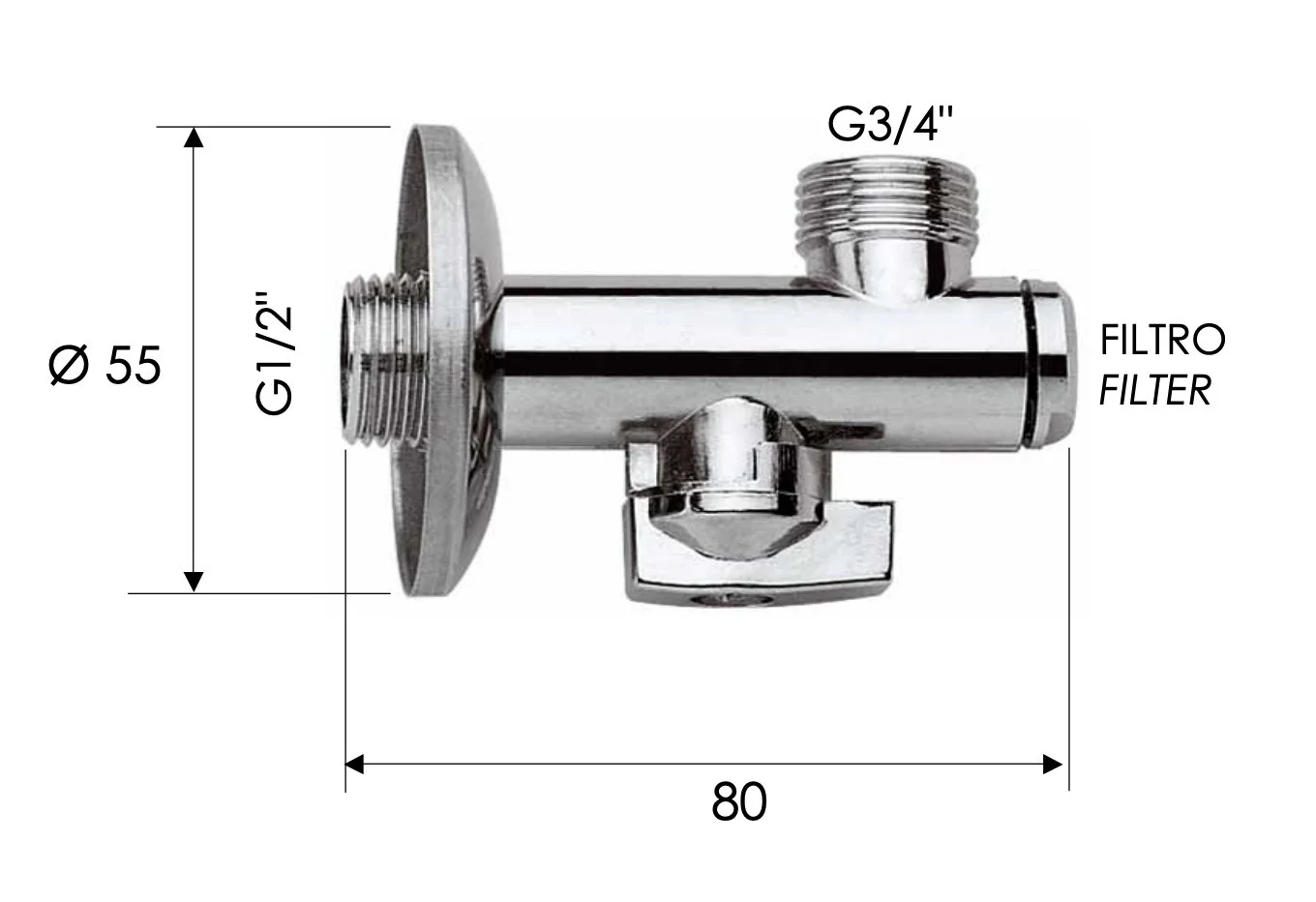 Вентиль запорный Remer 1231234 с фильтром 1/2x3/4