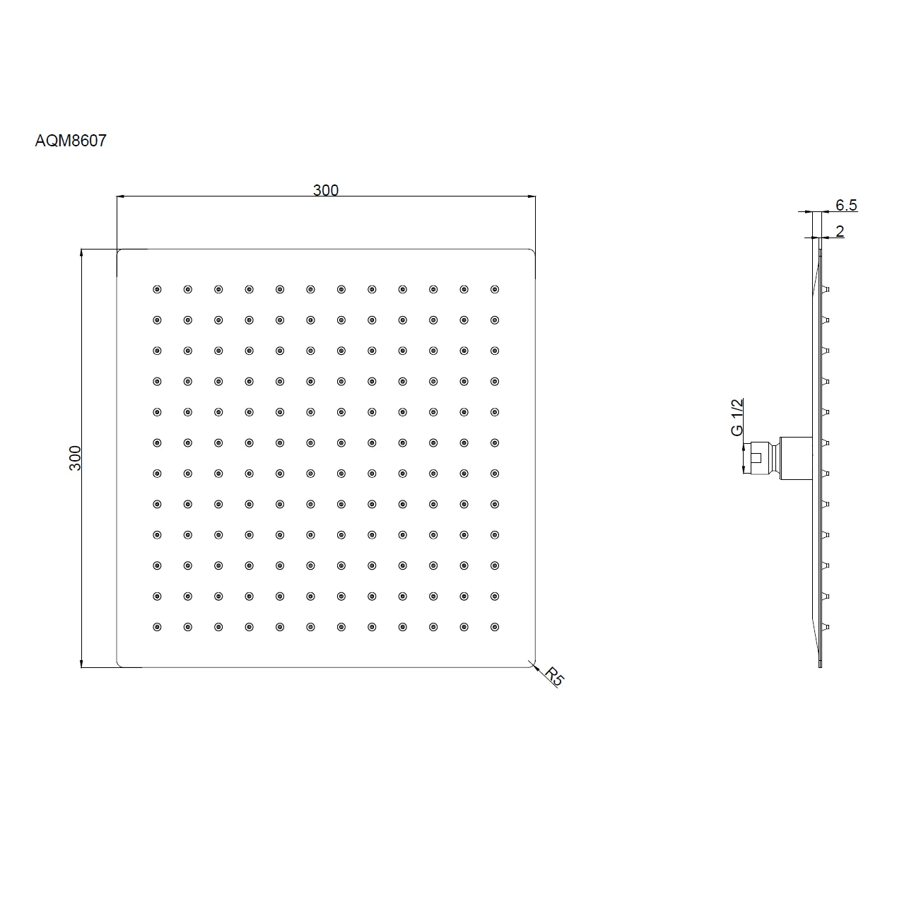 Верхний душ AQUAme AQM8607GM 300х300мм, металл шлифованный