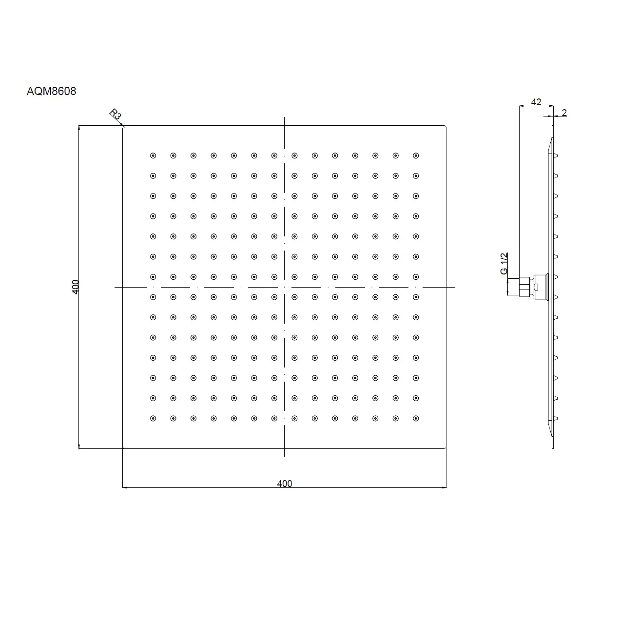 Верхний душ AQUAme AQM8608BG 400х400мм, золото шлифованное