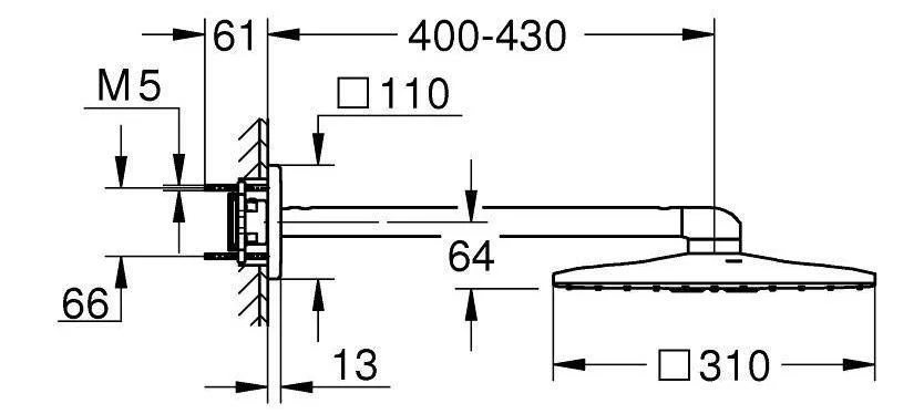 - Форма верхнего душа: Квадратная
