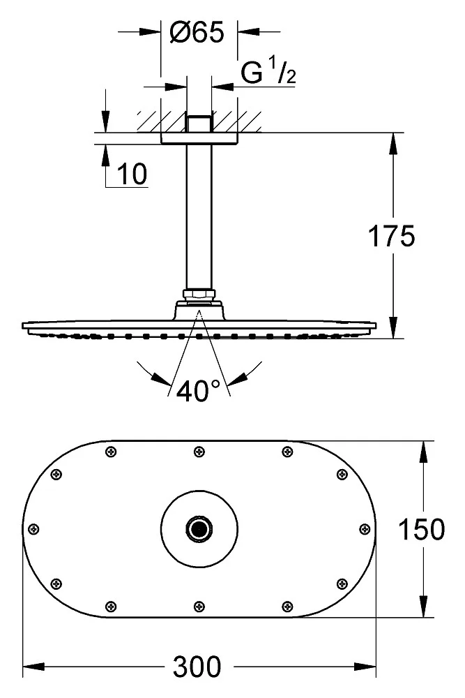 - Rainshower® Veris Верхний душ (27470000 (Верхний душ GROHE Rainshower Veris, 1 режим, 300х150 мм, хром))