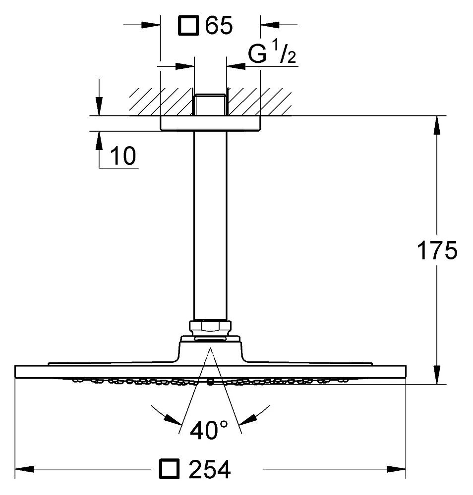 - Верхний душ Rainshower F 10'' (27271000 (Верхний душ GROHE Rainshower F-series, 254х254 мм, шаровый шарнир, хром))