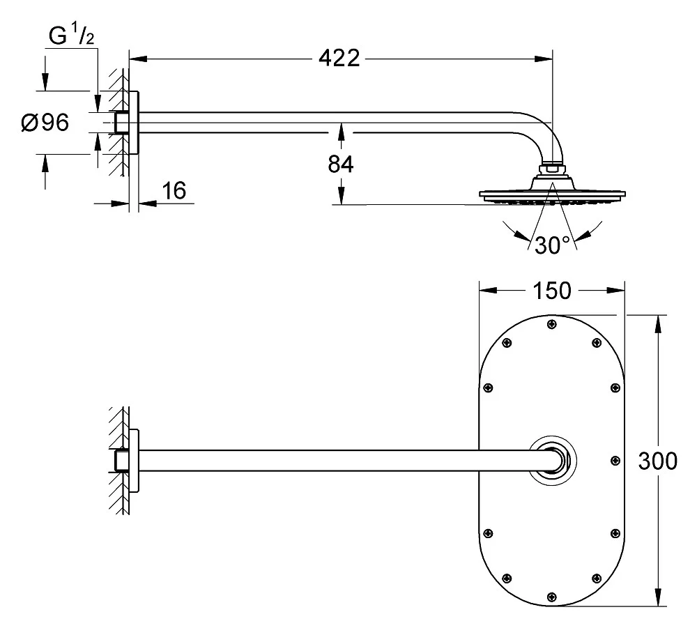 Душевой кронштейн Rainshower® 450 мм (26 146 000)