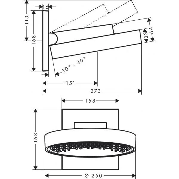 Верхний душ Hansgrohe Rainfinity 250 1jet EcoSmart 9 л/мин с настенным разъемом 26227000