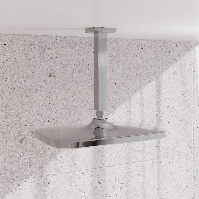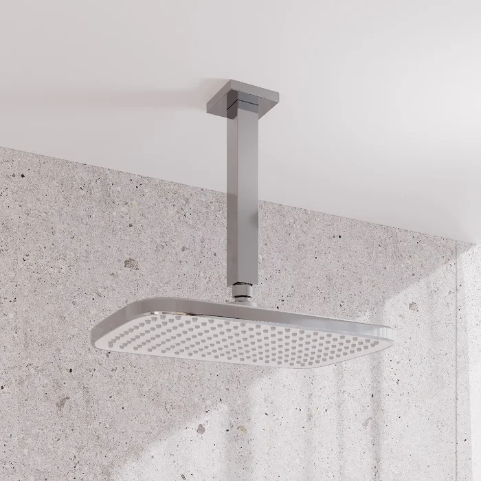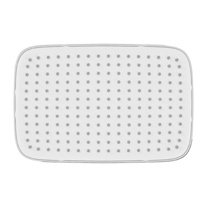 Хромированная прямоугольная верхняя лейка для тропического душа Esper с белой лицевой частью станет отличным дополнением для встраиваемой душевой системы или заменит надоевшую лейку душевого гарнитура. За счет большого размера лейка создает объемный поток воды, достаточный для комфортного принятия душа. Подходит ко всем кронштейнам со стандартным резьбовым соединением G 1/2”.