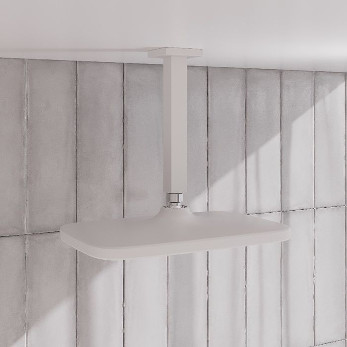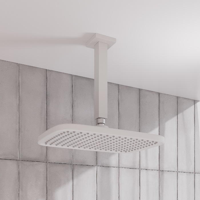 Белая матовая прямоугольная верхняя лейка для тропического душа Esper станет отличным дополнением для встраиваемой душевой системы или заменит надоевшую лейку душевого гарнитура. За счет большого размера лейка создает объемный поток воды, достаточный для комфортного принятия душа. Подходит ко всем кронштейнам со стандартным резьбовым соединением G 1/2”.