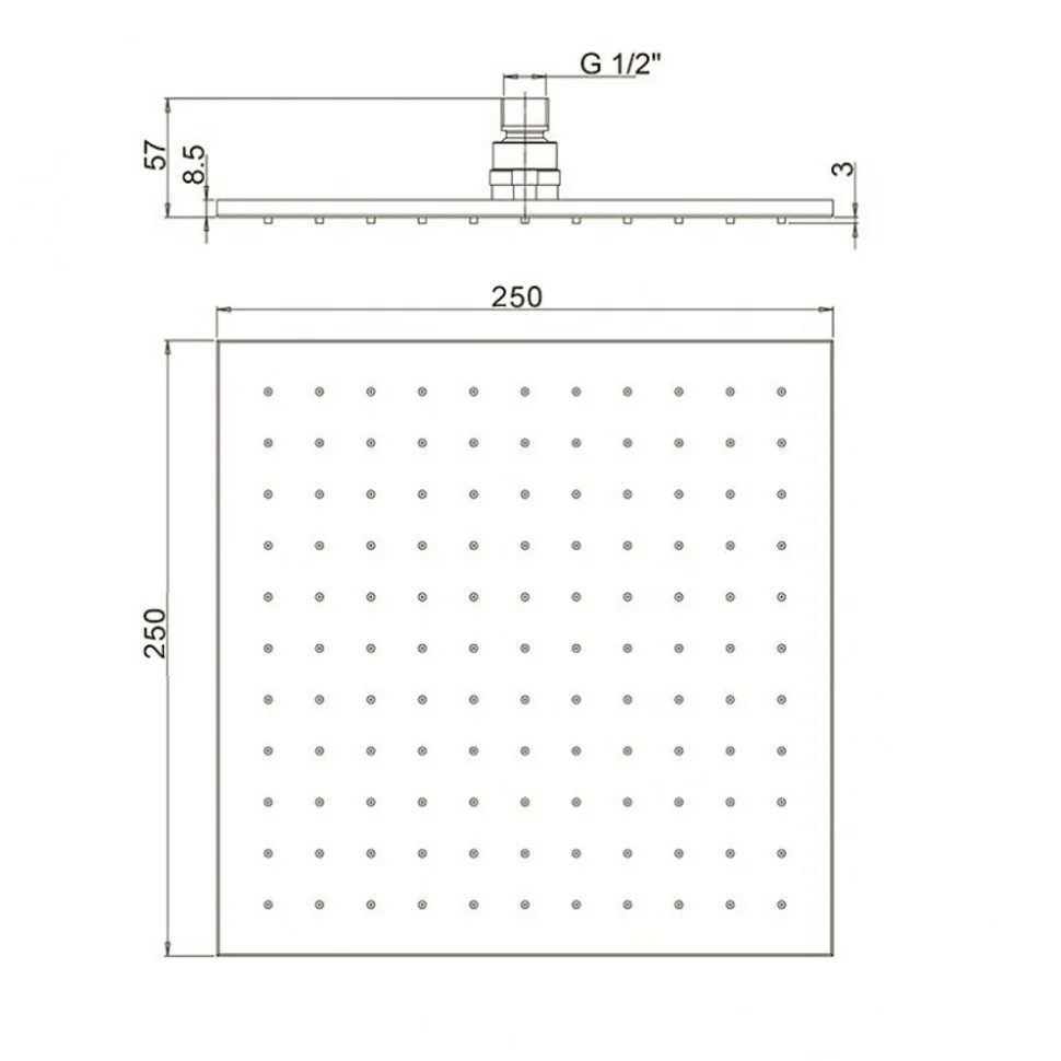 Верхний душ Paini 250 мм, квадратный, хром 50CR759Q25EA