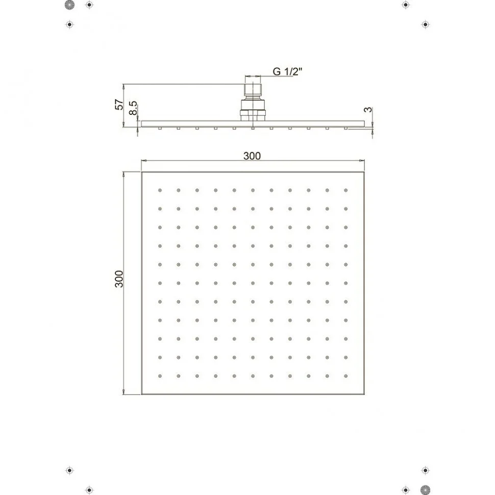 Верхний душ Paini металл, квадратный, 300 мм, хром 50CR759Q30