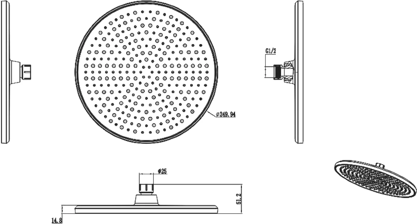 Верхний душ Raglo R451.50.09 250мм пластик/силикон, графит