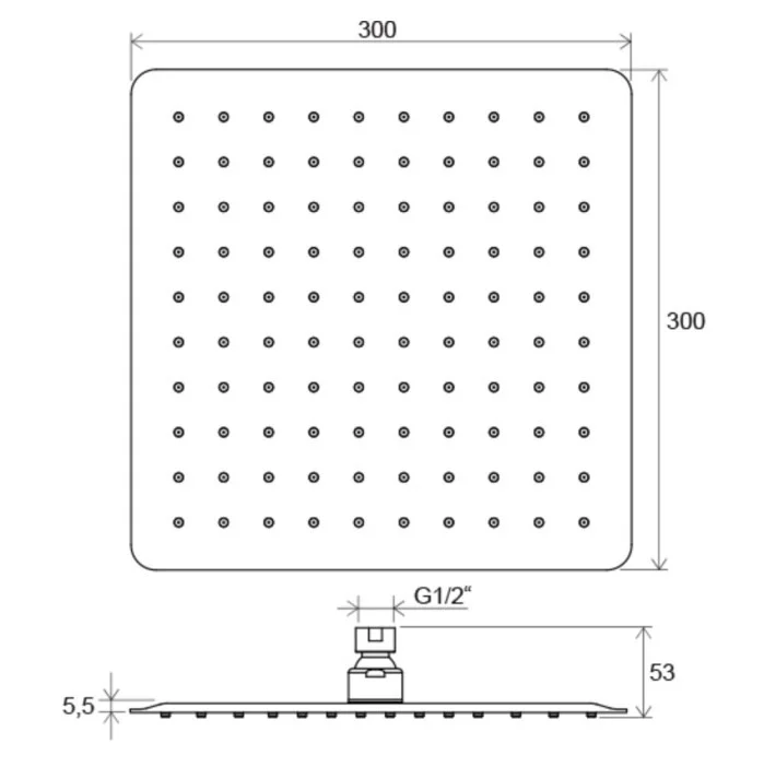 Лейка для душевого вывода Slim, Chrome 300 мм. 982.00. квадратная, диаметр: 300 мм., тонкий Slim, хромированный, EasyClean - простая чистка форсунок, цвет: хром.