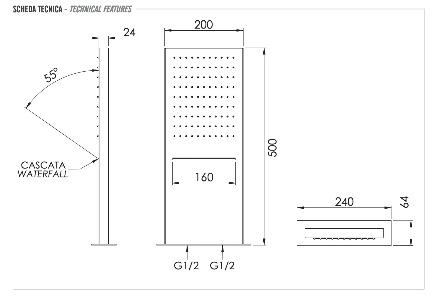 Верхний душ Remer 350SSCAX настенный 50x20 см