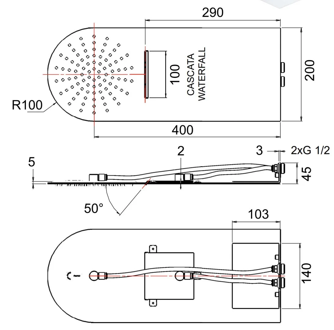 Верхний душ Remer 350UFMCANOX настенный 50x20 см, черный матовый