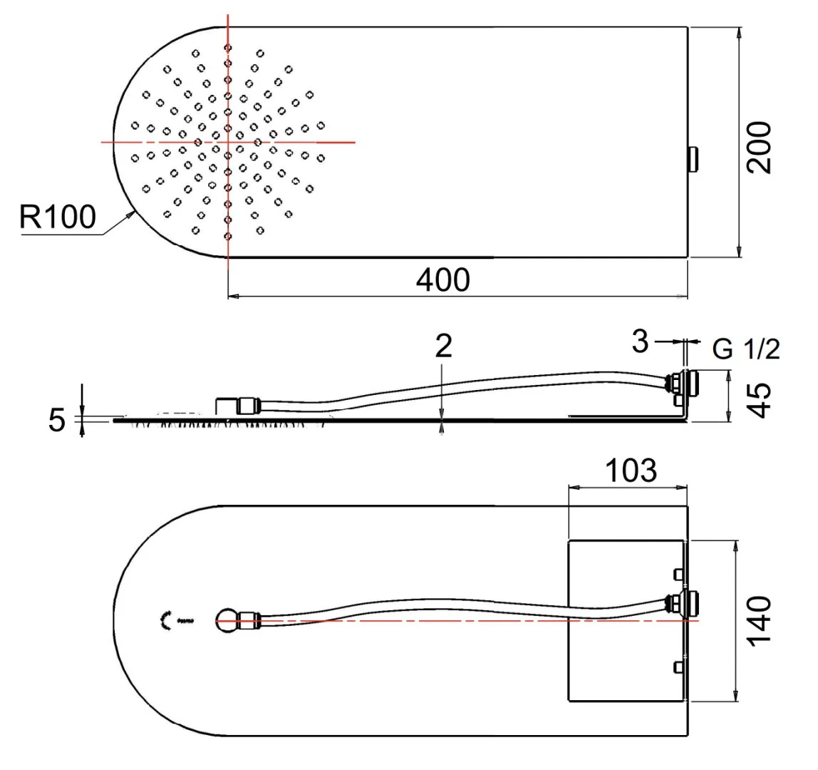 Верхний душ Remer 350UFMNOX настенный 50x20 см, черный матовый