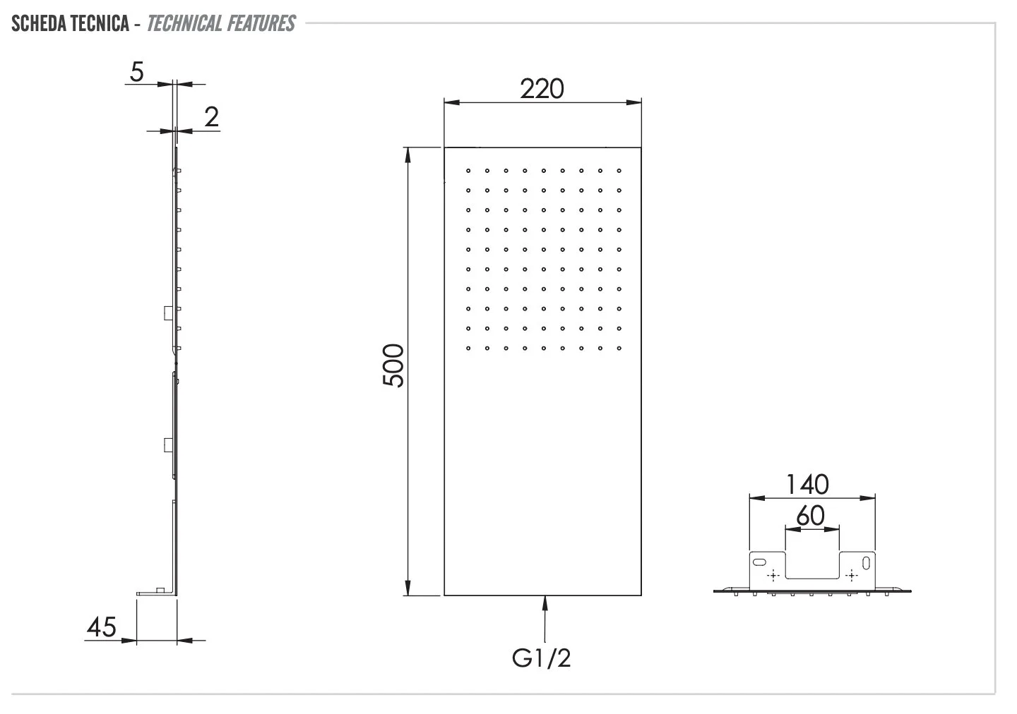 Верхний душ Remer 350UFNOX настенный 50x25 см, черный матовый