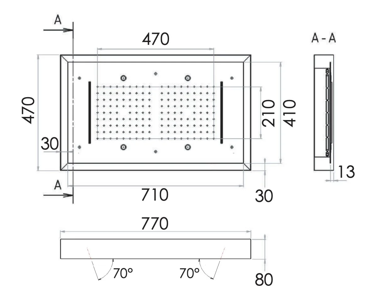 Верхний душ Remer 357LR7747N2C потолочный с подсветкой 77x47 см
