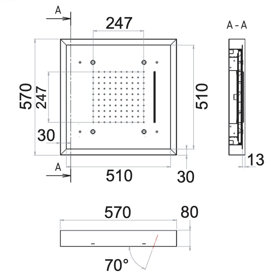Верхний душ Remer 357LS57NC потолочный с подсветкой 57 см