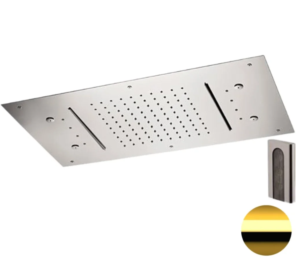 Верхний душ Remer 357RR7040N2CWDO потолочный с подсветкой 70x40 см, золото глянцевое