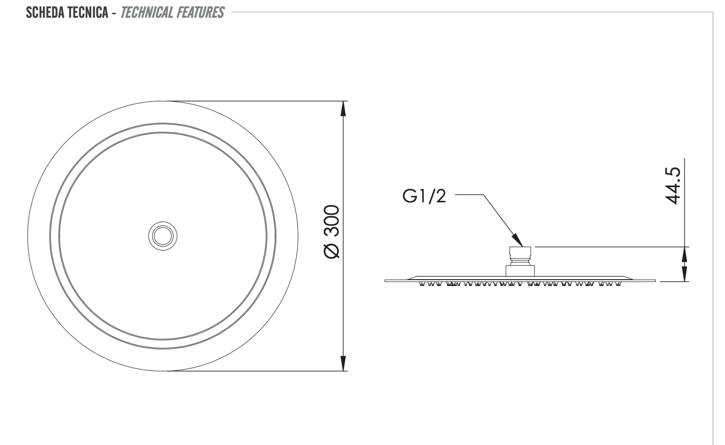 Верхний душ Remer INOX SS357UFM30X с шарнирным соединением 30 см, нержавеющая сталь