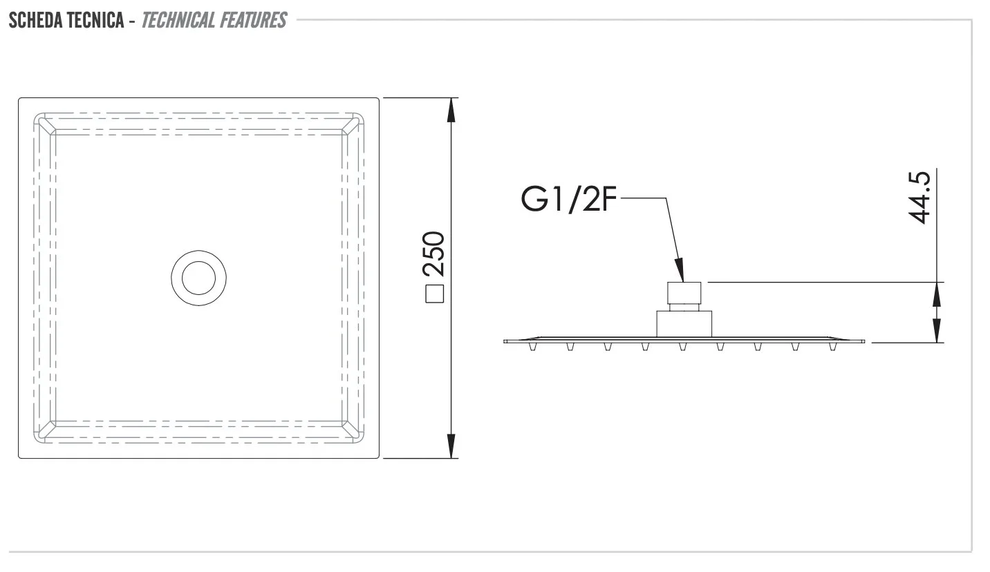 Верхний душ Remer INOX SS357UFS25X с шарнирным соединением 25 см, нержавеющая сталь