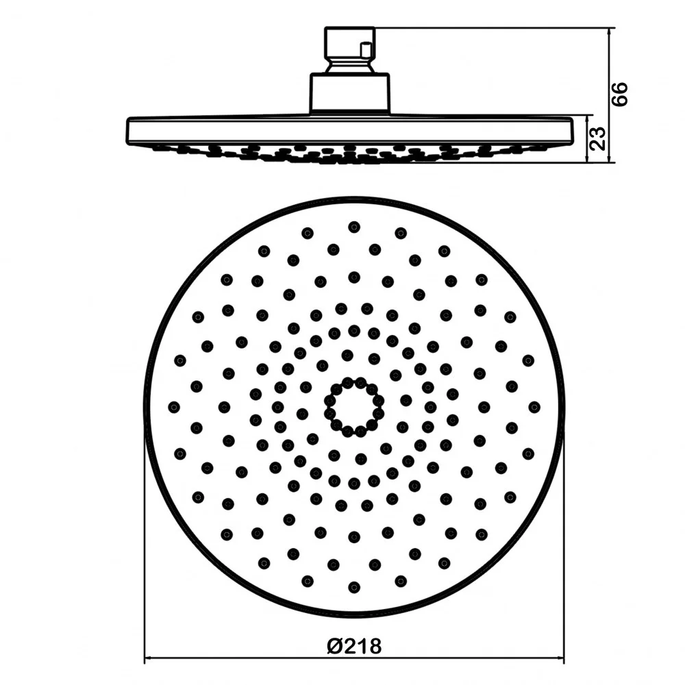 Верхний душ, 1-режим, ABS пластик - хром, лицевая сторона - серый пластик, латунное соединение,  Диаметр - 220мм