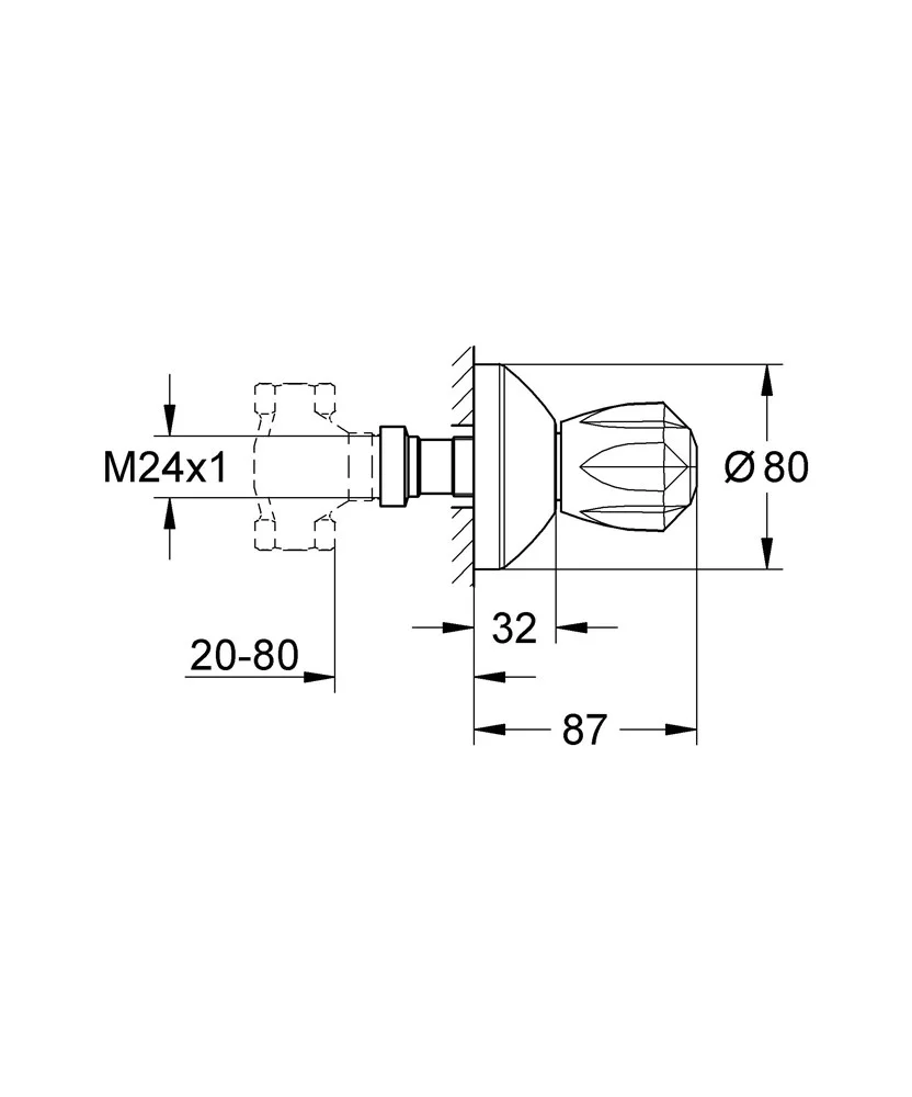 Atlanta Накладная панель скрытой вентильной головки для встраиваемых вентилей, 1/2", 3/4", 1" плавная регулировка глубины монтажа 20-80 мм розетка с уплотнителем, завинчивающаяся Brillant-рукоятка маркировка красная GROHE StarLight® хромированная поверхность