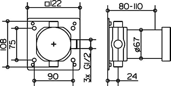 Внутрення часть Keuco IXMO назначение-для вентиля для переключателя на 2 потребителя и выводом для шланга DN 15 для встройки в стену