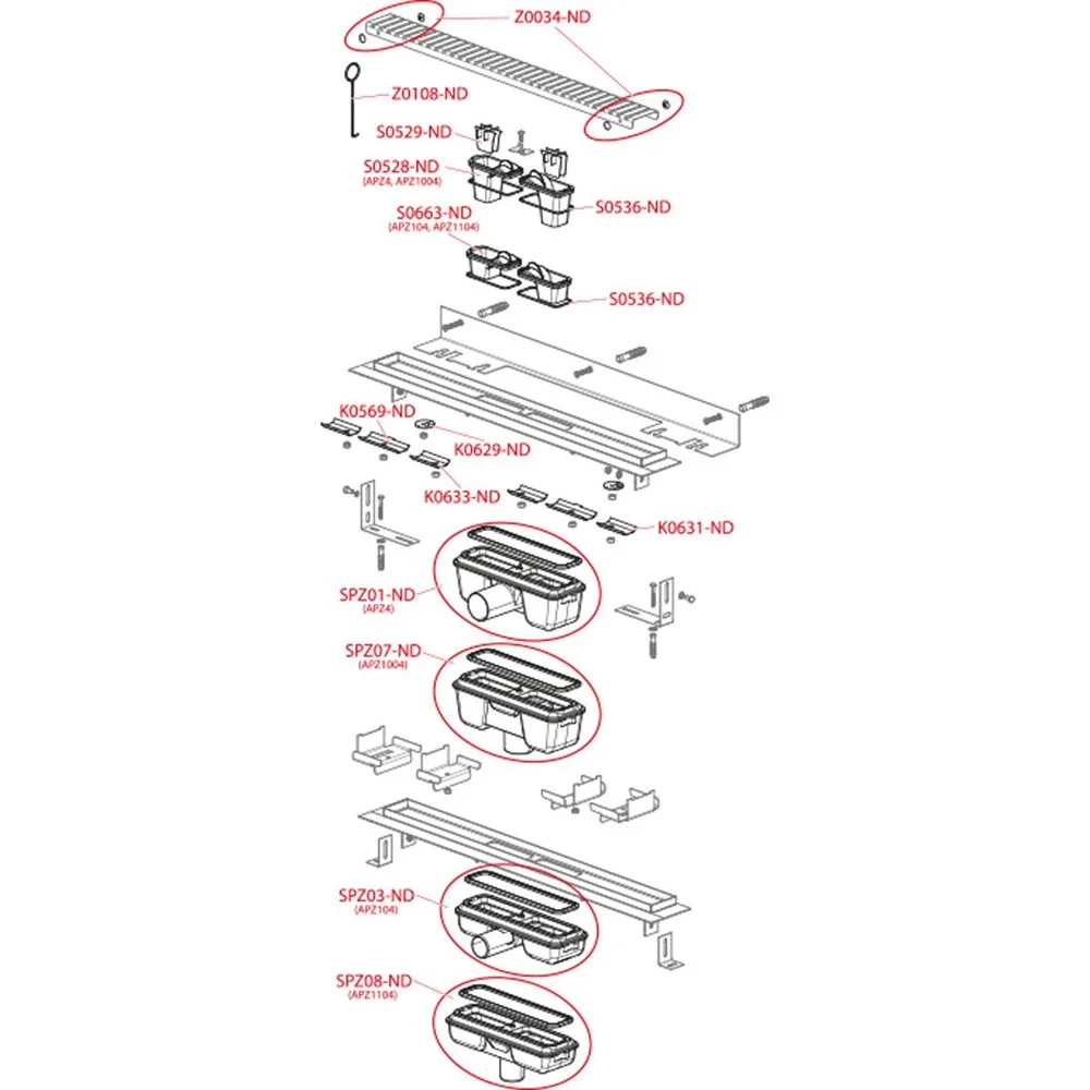 Душевой лоток для перфорированной решетки Alcaplast APZ1104-950 с регулируемым краем к стене
