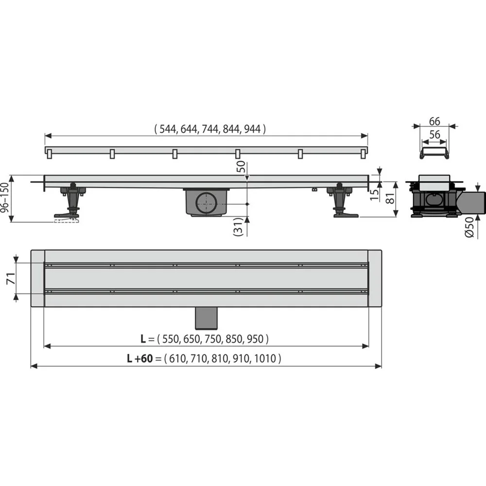 Душевой лоток Fit&Go с двухсторонней решеткой Alcaplast DOUBLE APZ13-DOUBLE9-550