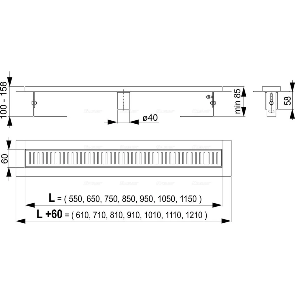 Душевой лоток с порогами для перфорированной решетки Alcaplast APZ2001-550 без гидрозатвора