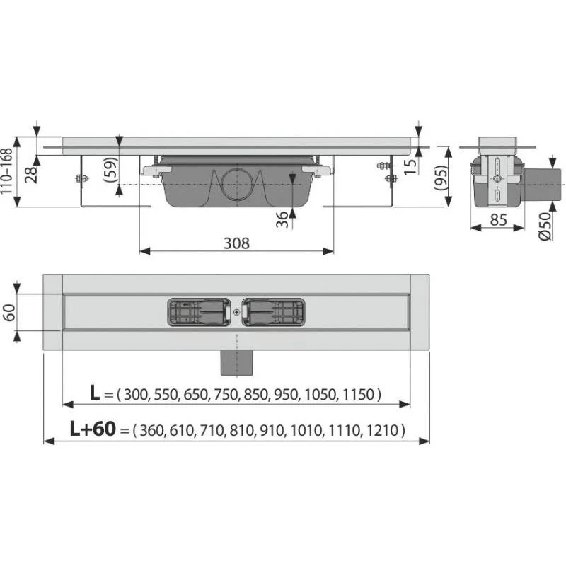 Душевой лоток с порогами для цельной решетки Alcaplast APZ6S-850