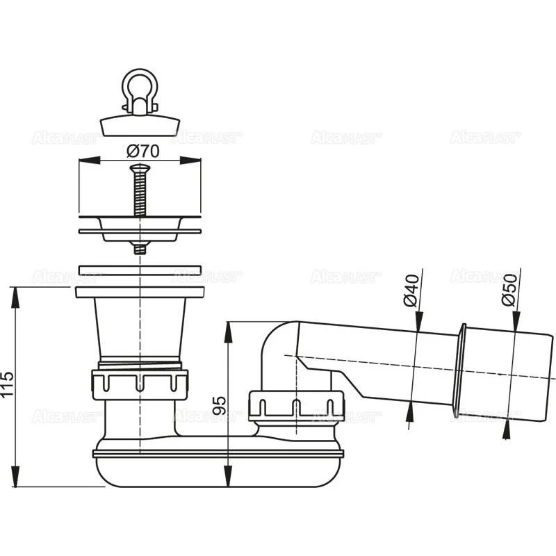 Выпускной комплект с гидрозатвором Alcaplast A461-50