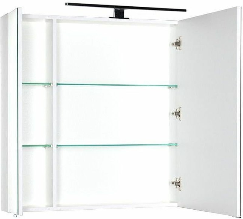 Зеркальный шкаф Акванет Эвора станет украшением любого интерьера. За зеркальным полотном находятся несколько стеклянных полок, на которых удобно расположить все необходимые косметические средства.