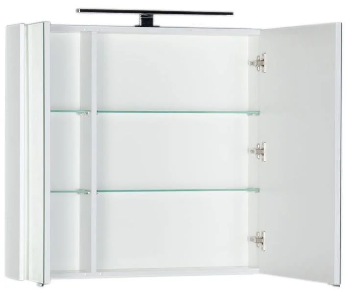 Зеркальный шкаф Акванет Латина — предложение для тех, кто решил создать ванную комнату в стиле «модерн». По ту сторону зеркального полотна найдется достаточно места для хранения необходимых для ежедневной гигиены принадлежностей, кроме того, теперь они будут располагаться удобно, непосредственно «под рукой». Полки зеркала-шкафа выполнены из специального ударопрочного стекла. Мягкое, в то же время достаточное по силе освещение создают экономичные внешние светильники.