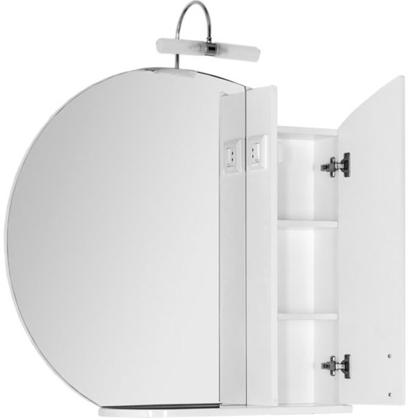 Зеркало Aquanet Моника 85 (белый) совмещает в себе с одной стороны – элегантность и изысканный стиль, а с другой – качественное исполнение и функциональность. Оно входит в базовый комплект коллекции. Дизайн зеркала тщательно продуман, как, впрочем, и функциональность. Его форма вносит в коллекцию мягкую округлость. В модели предусмотрительно установлен небольшой шкафчик, где без труда разместятся мелочи, которые пригодятся в ванной комнате. Этот элемент модели, хоть и отличается по фактуре, является логическим продолжением формы зеркала. На боковой стороне шкафчика установлена розетка. Для размещения предметов гигиены ежедневного использования на зеркале предусмотрена небольшая открытая полочка для самого необходимого. Если установить в верхней части зеркала светильник, являющийся дополнительной опцией, то это добавит всей модели завершенность. Полноценно обеспечить светом ванную комнату он, конечно, не сможет, но создаст в помещении комфортную обстановку, позволяющую совершить гигиенические процедуры. Это ос