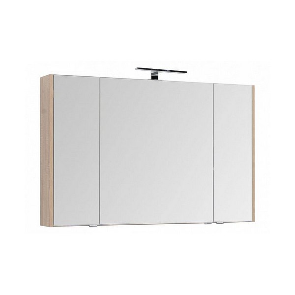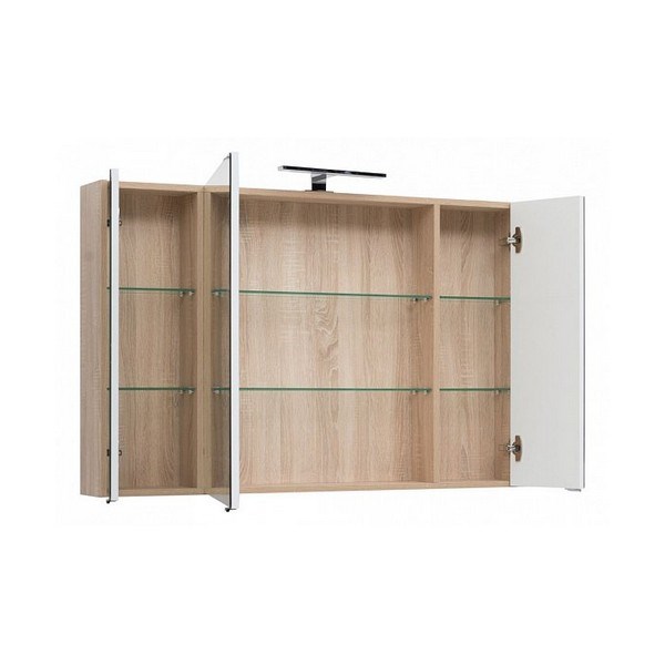 Зеркальный шкаф Aquanet Остин 120 в цвете "дуб сонома" выглядит свежо и необычно за счет мягкого контраста между светлым корпусом "под дерево" и зеркального фасада. Зона хранения внутри шкафчика шириной 120 см поделена на три секции, каждая из которых имеет отдельную зеркальную распашную дверцу. Полочки внутри них стеклянные, что придает легкость. Зеркальный шкафчик станет настоящим украшением интерьера с акцентом на стили ретро, кантри, прованс.