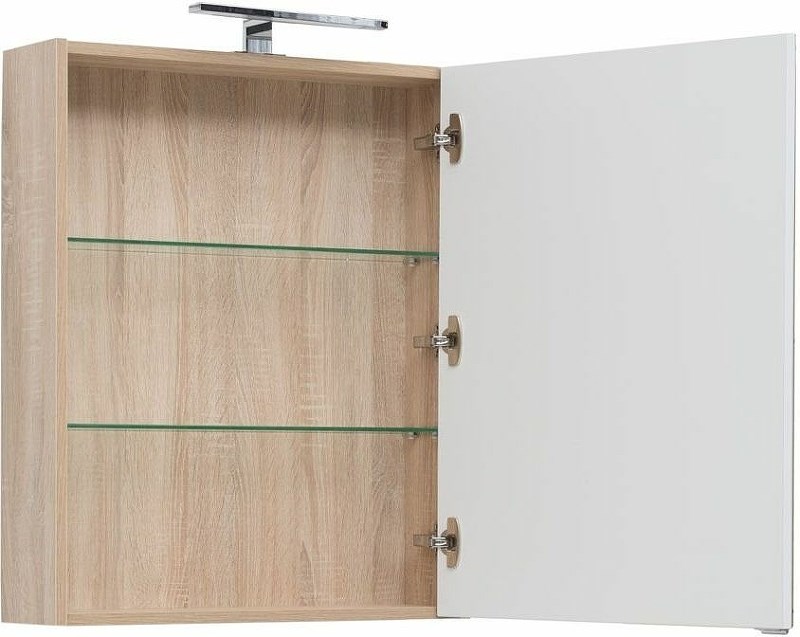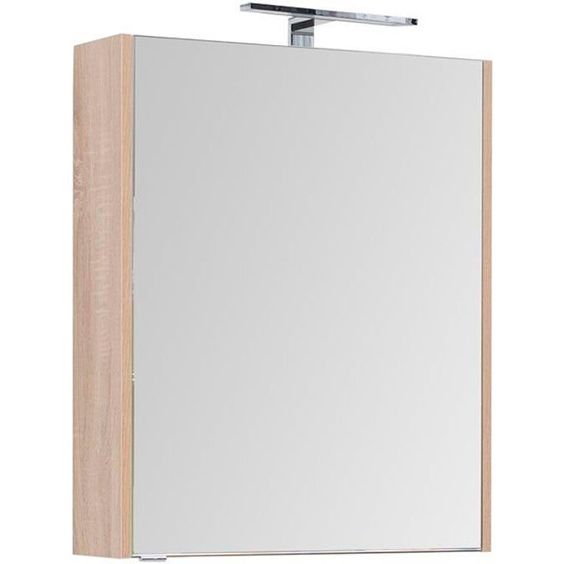 Зеркальный шкаф Aquanet Остин 65 в цвете "дуб сонома" выглядит свежо и необычно за счет мягкого контраста между светлым корпусом "под дерево" и зеркального фасада. Зона хранения внутри шкафчика шириной 65 см поделена на три полочки, две из которых стеклянные, что придает легкость. Зеркальный шкафчик станет настоящим украшением интерьера с акцентом на стили ретро, кантри, прованс.