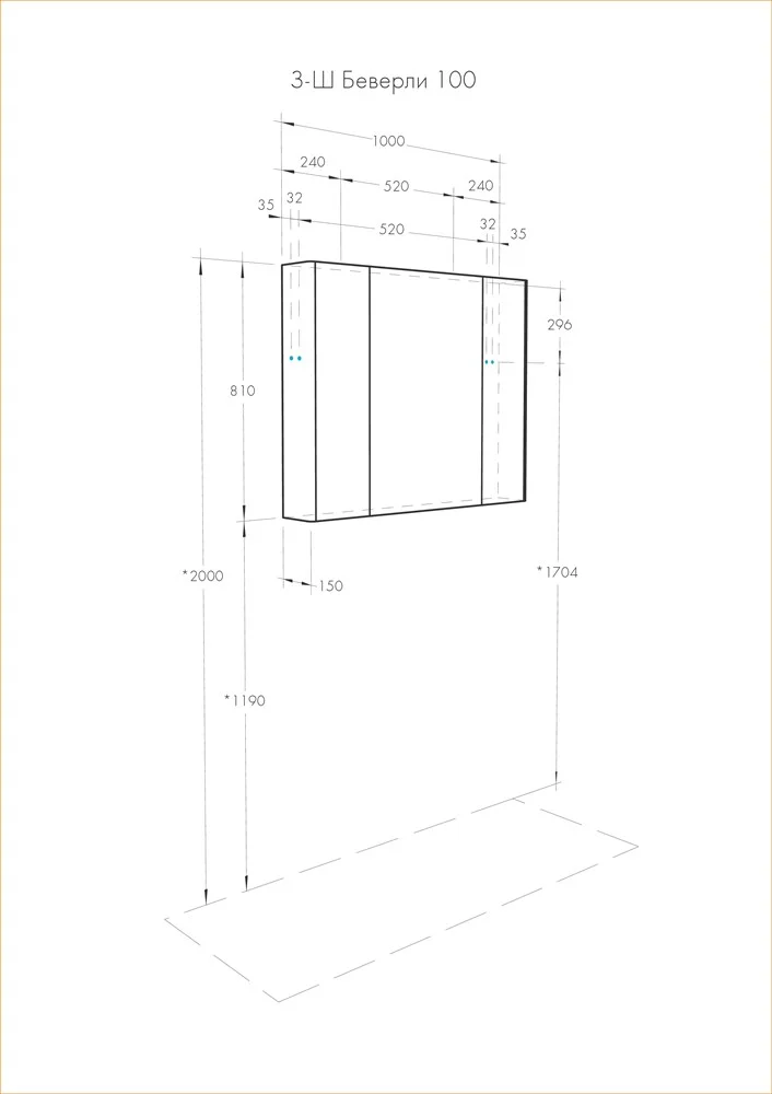 Зеркальный шкаф Беверли 100 в современном стиле выполнен из влагостойкой ламинированной плиты и высококачественной MDF. За тремя зеркальными фасадами-створками, которые снабжены петлями с интегрированной системой плавного закрывания, расположены три вместительных отделения со стеклянными полками, регулируемыми по высоте. Боковые стенки зеркального шкафа окрашены в белый цвет с высокой степенью глянца, что обеспечивает изделию привлекательный внешний вид, а также износостойкость и долговечность.