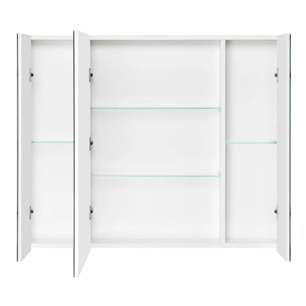 Зеркальный шкаф Беверли 100 в современном стиле выполнен из влагостойкой ламинированной плиты и высококачественной MDF. За тремя зеркальными фасадами-створками, которые снабжены петлями с интегрированной системой плавного закрывания, расположены три вместительных отделения со стеклянными полками, регулируемыми по высоте. Боковые стенки зеркального шкафа окрашены в белый цвет с высокой степенью глянца, что обеспечивает изделию привлекательный внешний вид, а также износостойкость и долговечность.