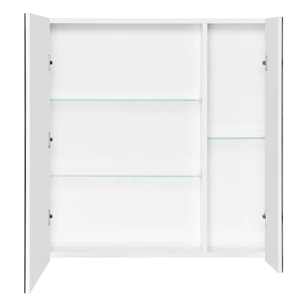 Зеркальный шкаф Беверли 85 в современном стиле выполнен из влагостойкой ламинированной плиты и высококачественной MDF. За двумя зеркальными фасадами-створками, которые снабжены петлями с интегрированной системой плавного закрывания, расположены два вместительных отделения со стеклянными полками, регулируемыми по высоте. Боковые стенки зеркального шкафа окрашены в белый цвет с высокой степенью глянца, что обеспечивает изделию привлекательный внешний вид, а также износостойкость и долговечность.